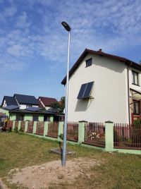 z zamontowanymi oprawami. Istniejące skorodowane słupy zostały zastąpione nowymi. Oprawy rtęciowe wymieniono na energooszczędne oświetlenie LED.