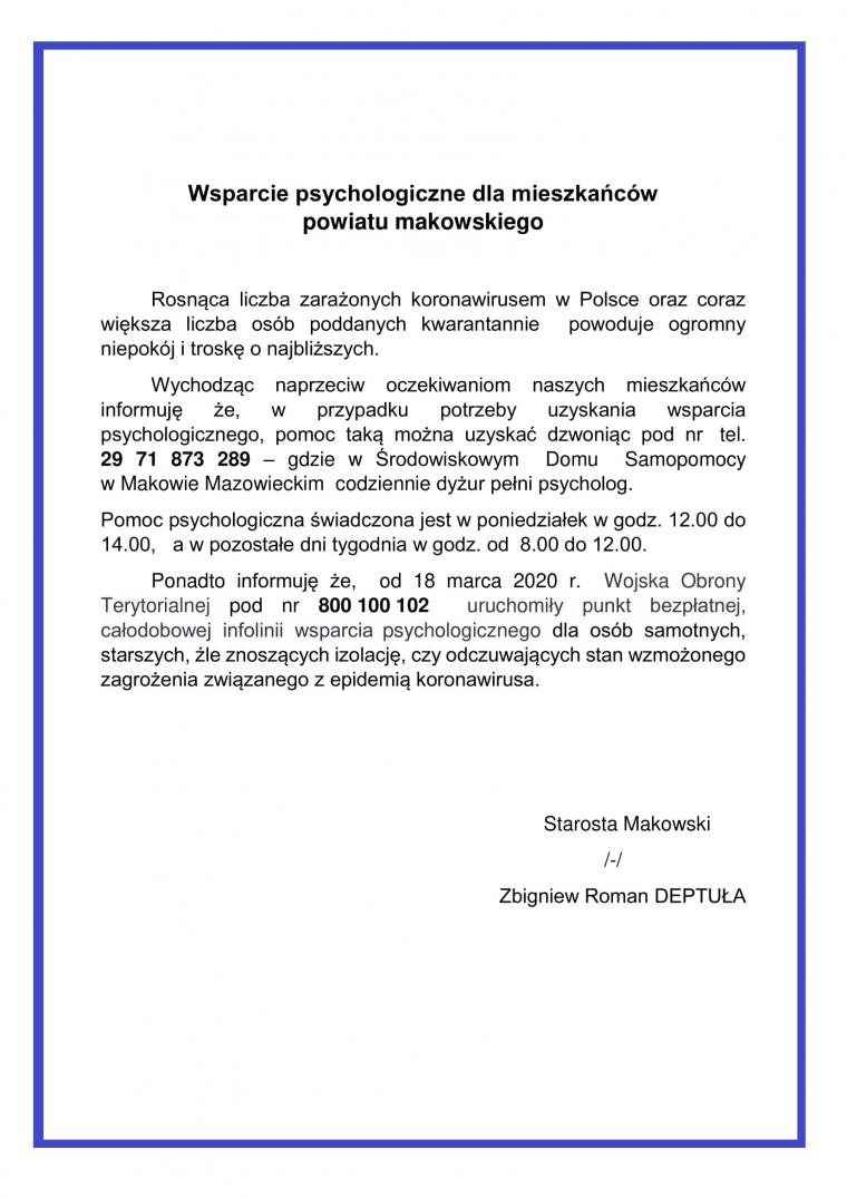 2020.03.24WSPARCIE PSYCHOLOGICZNE DLA MIESZKAŃCÓW POWIATU MAKOWSKIEGO