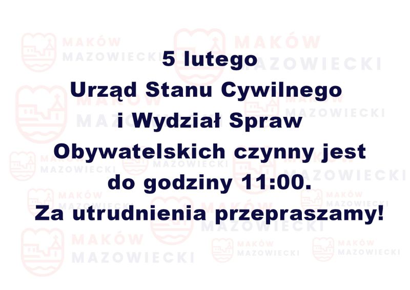 • Skrócony czas pracy USC i Wydziału Spraw Obywatelskich - 5 lutego 2026 r.
