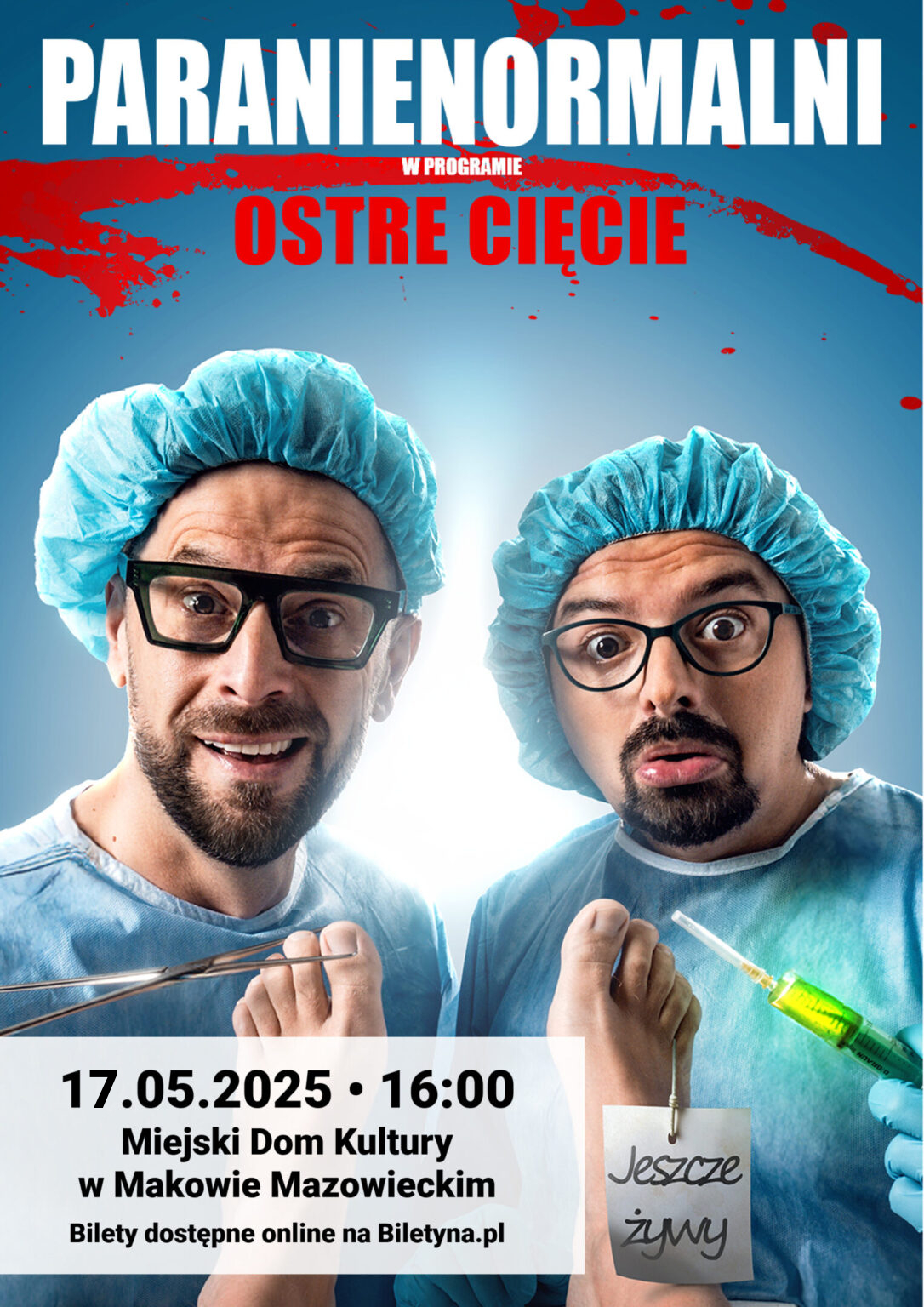 Czy jesteście gotowi na prawdziwy spektakl komedii, który rozbroi Wasze troski i zostawi jedynie śmiech? Paranienormalni zapraszają na Ostre Cięcie – program, który odcina wszystko, co nudne, i zszywa Wasze serca radością!